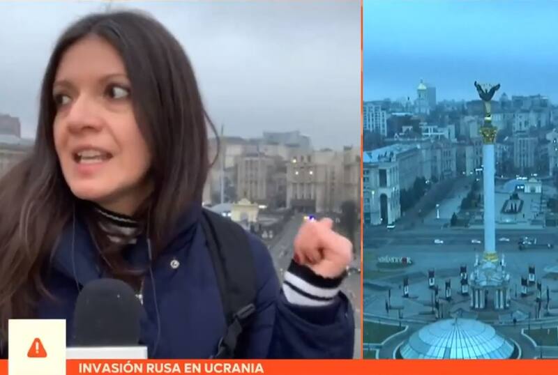 Mariana Díaz, corresponsal de prensa de Canal 13, protagonizó un tenso despacho desde la Plaza de la Independencia en Kiev, Ucrania, lugar desde donde se escucharon las primeras sirenas de alarma tras el ataque ruso.
