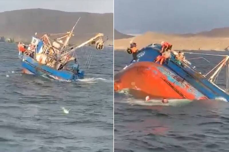 "¡Tírense al agua!": graban hundimiento de embarcación y rescate de tripulantes en Caldera