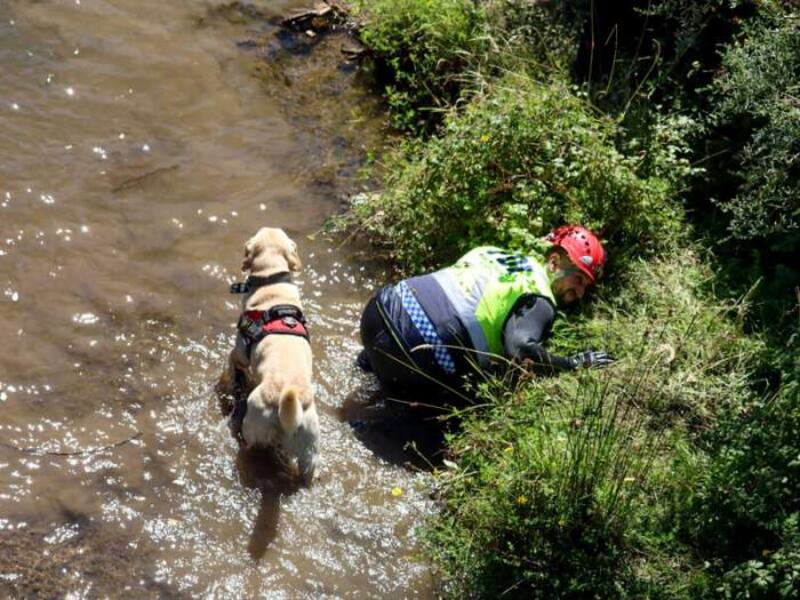 Se estima que el radio de búsqueda alcanza los ocho kilómetros. Perros adiestrados y una brigada subacuática participan en las pericias.