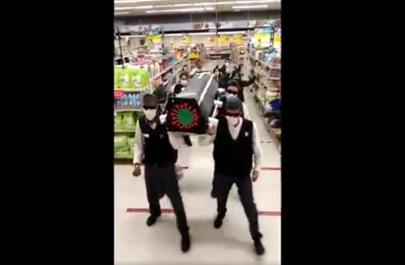 ¡Póngase mascarilla!: Trabajadores de Supermercado parodiaron meme del ataúd para combatir el coronavirus