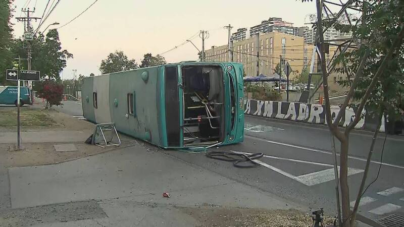 El capitán Pedro Caballero, de Carabineros, explicó a 24 Horas que "el conductor del Transantiago venía por primera pista y por motivos que se investigan perdió el control del móvil, dando vuelta".