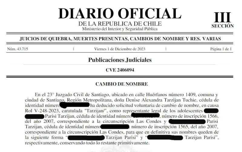 Resulta que su expareja, Denise Tarzijan, está solicitando legalmente cambiar los apellidos de los dos hijos que tiene con el economista. Específicamente, quiere cambiar su orden, dejando el materno primero.