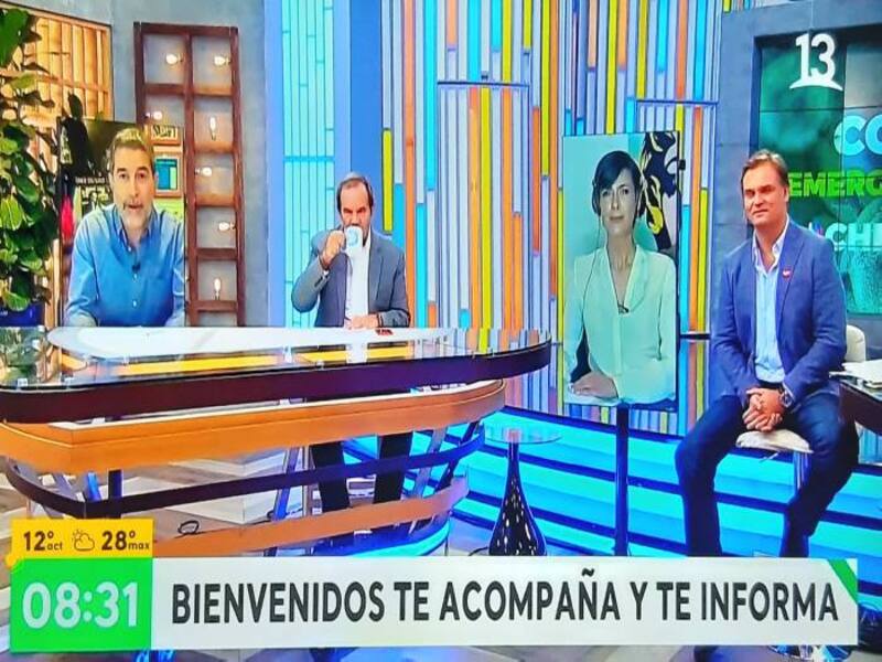 La animadora trabajó desde su casa y pusieron la pantalla con su imagen en el set del matinal de Canal 13.
