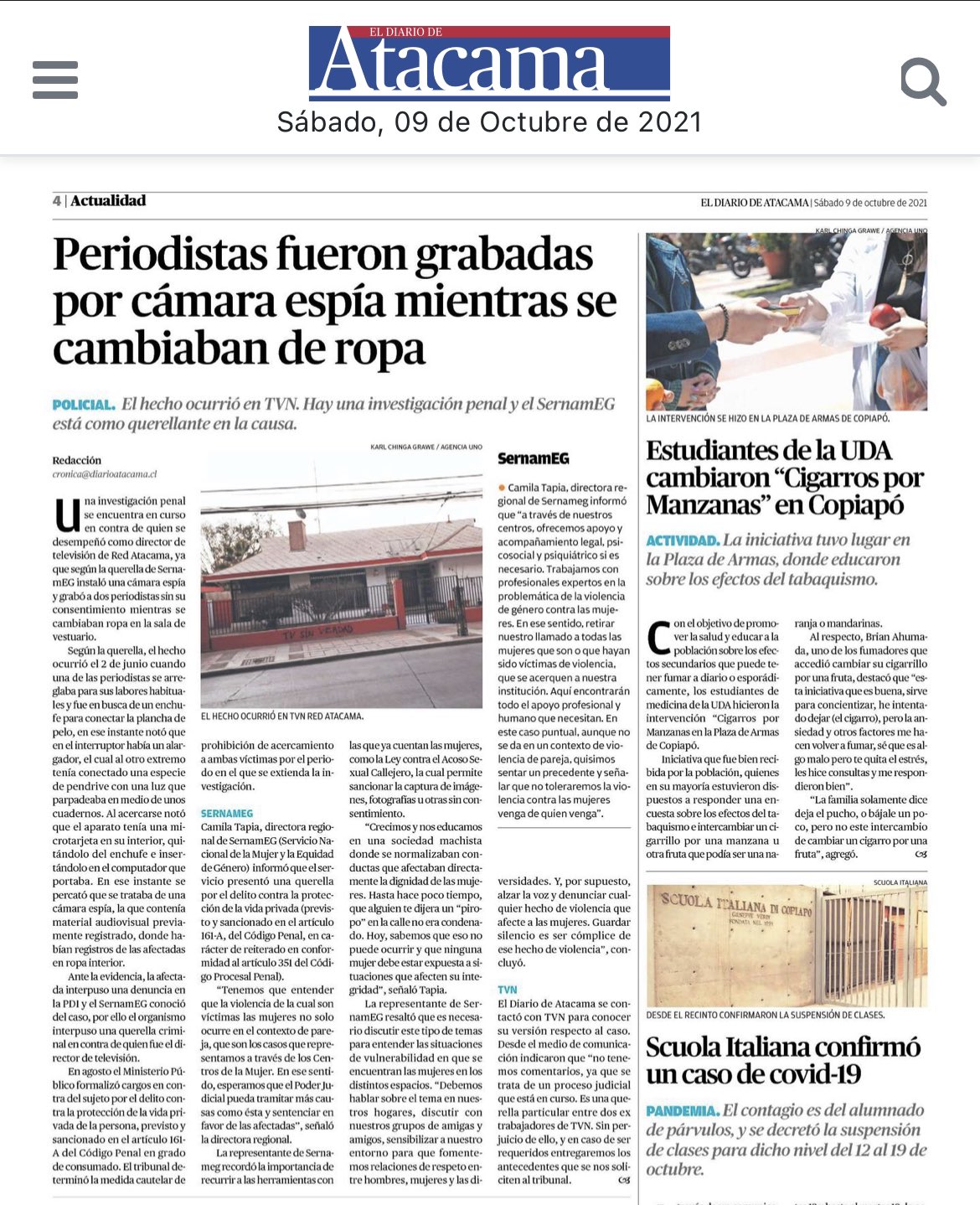 Impacto generó la revelación de una investigación penal en contra del director de TVN Red Atacama, luego que dos periodistas lo denunciaran por instalar y grabar sin su consentimiento con una cámara espía al interior de su vestidor de ropa.
