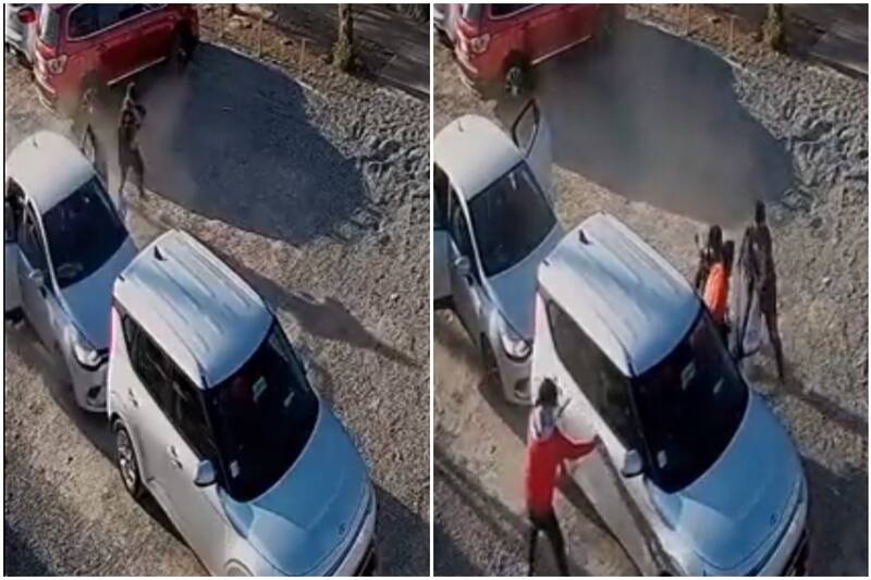 En el registro aparece el cadete en su auto esperando ingresar al Centro Deportivo Azul (CDA) ubicado en la comuna de La Cisterna, cuando otro vehículo se estaciona mientras que bajan un grupo de jóvenes con un martillo, para robarle el auto.