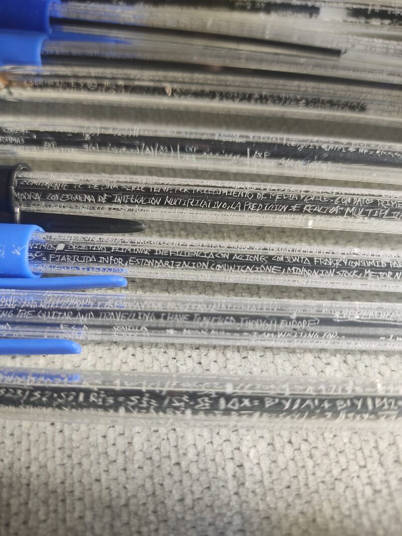 Y la reliquia universitaria a la que se refería, como se puede ver en las imágenes que acompañan la publicación, eran nada más y nada menos que varios lápices pasta color azul, con la particularidad de que estaban completamente marcados en el “cuerpo” de plástico: era la ingeniosa manera de copiar, pocas veces vista, que tenía un alumno de la facultad.
