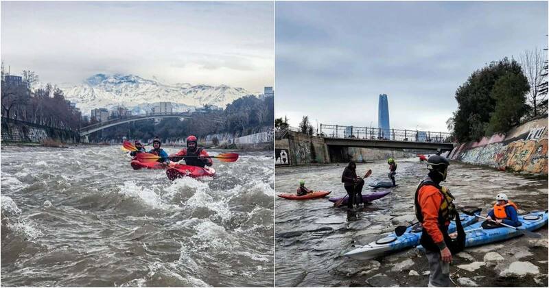 Luego del reciente sistema frontal en la Región Metropolitana, un grupo de kayakistas descendió por el caudal del río Mapocho. Una actividad que llamó la atención de los transeúntes y que fue organizada por el colectivo Slalom del Maipo y la Fundación Mapocho Vivo.