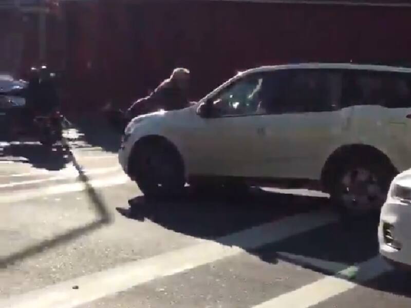 León comentó que "aparentemente discutían después de que el auto blanco golpeara al del señor que aparece en el vídeo", para luego comenzar a empujarlo con el vehículo y arrastrarlo sobre el capot.