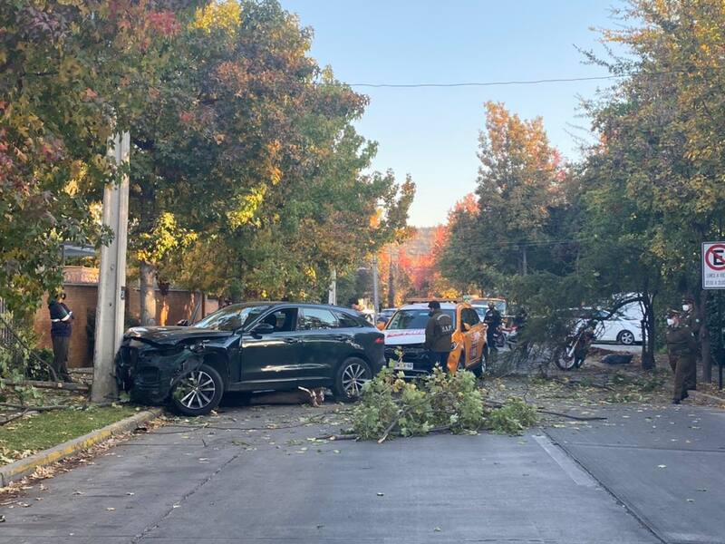 "Carabineros mantuvo un seguimiento controlado a distancia, el que finalizó en calle el Roble con El Tranque con los antisociales perdiendo el control del auto y chocando contra 2 automóviles estacionados. En el lugar se logró la detención de 3 hombres y la incautación de un arma al interior del auto", señalan desde la institución policial.