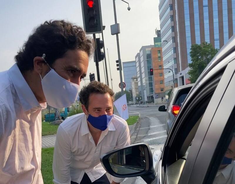 Desplegados junto a un semáforo, los dos Evópoli entregaban volantes con miras a las elecciones de convencionales constituyentes del próximo 11 de abril, comicios en que Larraín se encuentra como opción por el distrito 11 (Las Condes, Vitacura, Lo Barnechea, La Reina y Peñalolén).