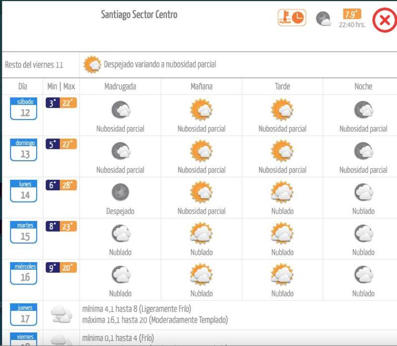 Así nomás, pues estos días nuevamente los termómetros se volverán a elevar sobre los 20 grados, de acuerdo a la Dirección Meteorológica de Chile. Claro, pues tras los 22°C que hicieron el viernes, para este sábado se espera una temperatura idéntica.