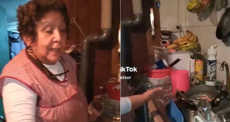 Al más puro estilo de Paty Cofré, la adulta mayor expresa su molestia debido a la loza que debe lavar producto de la celebración en familia.
