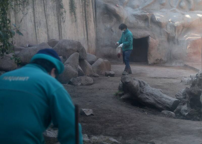 Más allá de los animales, lo único que se escucha son los pasos de los funcionarios del zoo. Es que las tareas de limpieza, alimentación y cuidado no cesan.