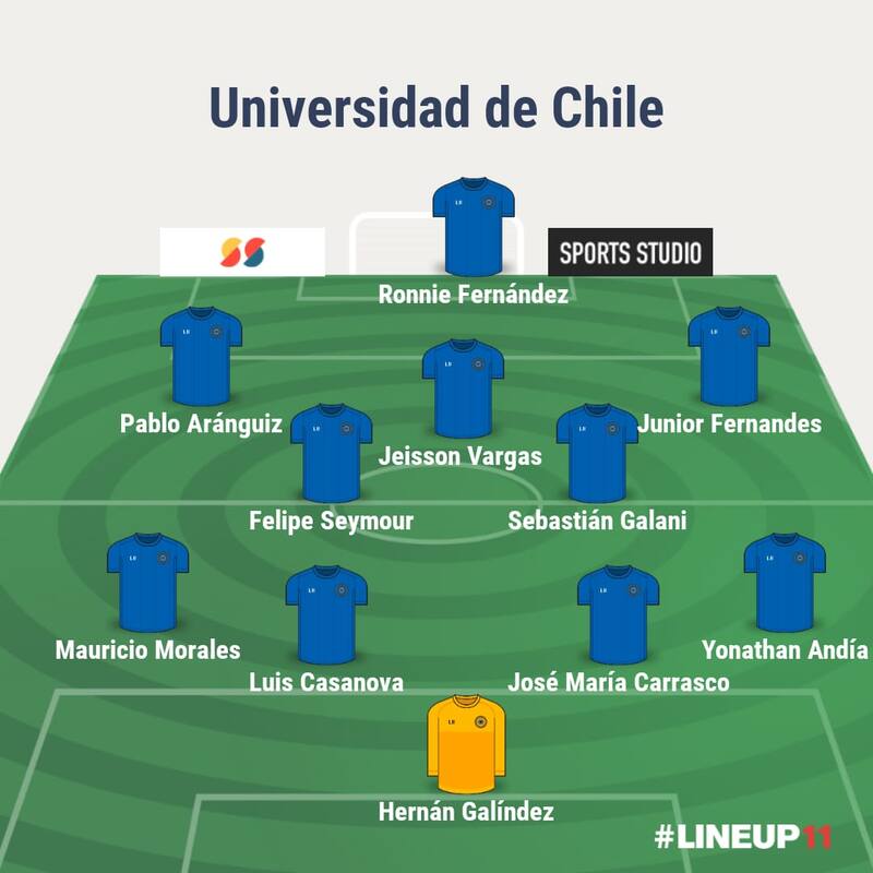 Hernán Galíndez; Yonathan Andía, Luis Casanova, José María Carrasco, Mauricio Morales; Sebastián Galani, Felipe Seymour; Junior Fernandes, Jeisson Vargas, Pablo Aránguiz; Ronnie Fernández.