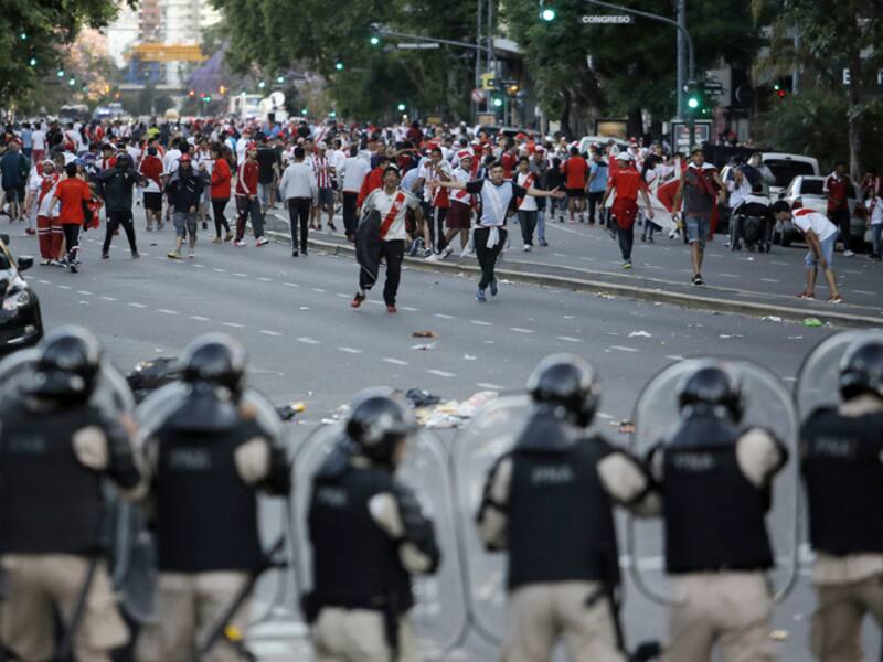 El autobús de Boca Juniors que conducía al estadio a la plantilla fue atacado por fanáticos de River Plate antes de llegar al estadio, en el barrio de Belgrano de Buenos Aires.