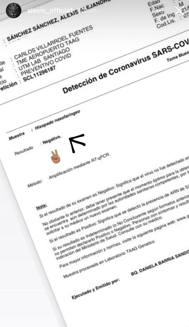 Por Juan Carlos MuñozAlexis Sánchez comparte resultado de PCR tras ser “aislado” junto a Vidal por covid positivo de Lautaro Martínez