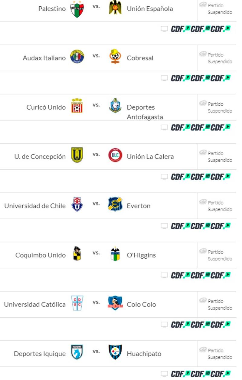 Es que los clubes decidieron retomar desde la fecha 12. Es decir la siguiente jornada calendarizada en el fixture. De esta forma Universidad Católica recibirá a Audax Italiano, Colo Colo a Coquimbo Unido y la "U" visitará a Huachipato.