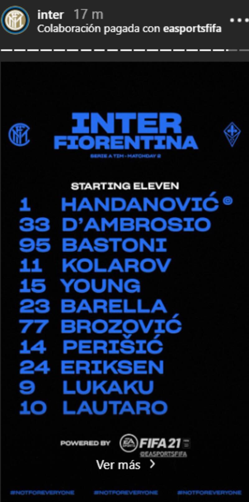 Esta tarde el Inter de Milán se enfrenta al equipo de Erick Pulgar, quien no fue citado debido a un problema de salud post coronavirus.