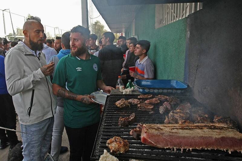 Vidal llegó a entrenar de sorpresa con el Rodelindo Román, donde compartió hasta un asado. La buena onda, eso sí, se le acabó al hablar de Bravo y Díaz.