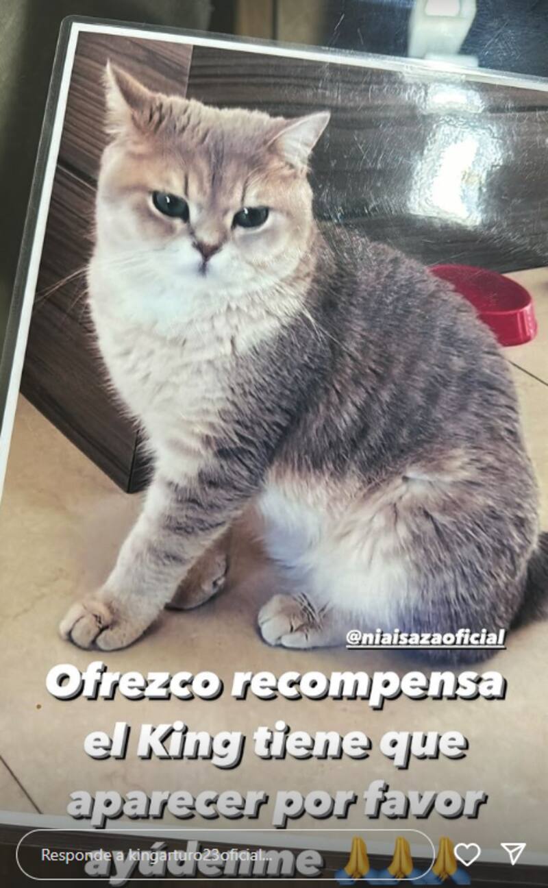 Por su parte, Sonia Isaza, pareja de Vidal, escribió: “¡Ayuda! Se ha perdido mi gato ‘King’. Mi gato desapareció anoche y no es normal en él alejarse de casa. Estoy muy preocupada y agradecería mucho si alguien puede ayudarme a encontrarlo”.