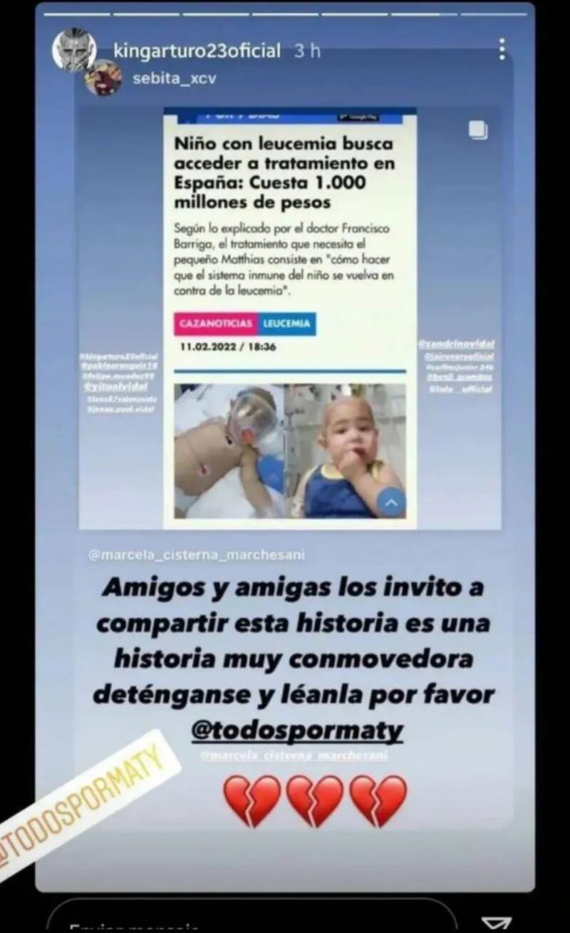 Además del mensaje, etiquetó el perfil de Instagram Todos por Maty y colocó emojis de corazones rotos por la dificultad que está atravesando el menor de tan solo dos años.