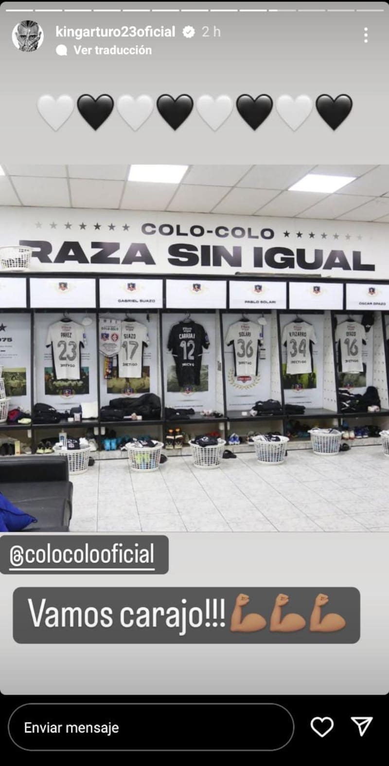 El King emocionó a los hinchas albos tras compartir en sus historias de Instagram una foto del camarín de los albos. “@ColoColoOficial vamos carajo!!”, detalló dando pistas de su especial visita a la ruca.