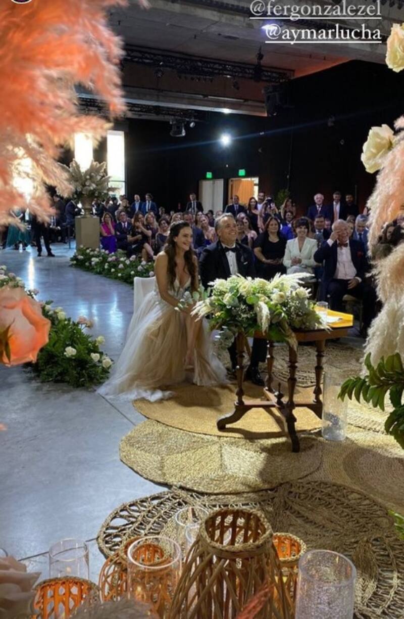 Según contó la weeding planner Constanza Provens a Las Últimas Noticias, la ceremonia y el cóctel tuvieron un estilo “boho chic”. Mientras que el salón principal se presentó “con mucho follaje, velas y sillas crossback”, entre otros detalles.