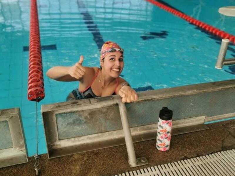 "Estoy súper contenta, ando hiperventilada, jajajá. Cuando entré a la piscina dije 'wow', no lo podía creer'. Fue una emoción súper grande, porque estuve 143 días sin agua", contó Bárbara Hernández a LaCuarta.com.