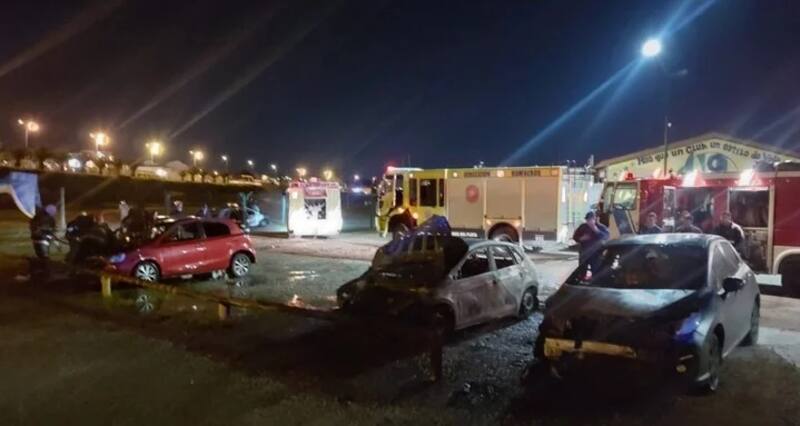 Los vecinos del sector llamaron al 911 cuando notaron las columnas de humo que aparecieron en la noche marplatense. Y al llegar los bomberos al predio, constataron que había cinco móviles en etapa de combustión, sin heridos.