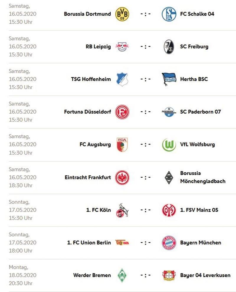 El partido que retomará la actividad lo protagonizarán el clásico entre Borussia Dortmund y el Schalke. En tanto, Charles Aránguiz cerrará la fecha cuando el Bayer Leverkusen visite al Werder Bremen el lunes 18 de este mes.