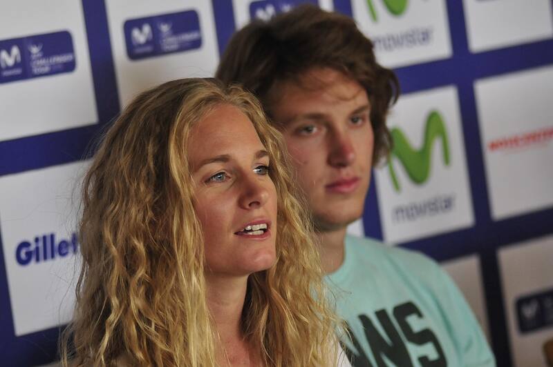 En la imagen, Catalina Fillol, integrante de la organización, habla en conferencia de prensa, junto al tenista Nicolás Jarry.