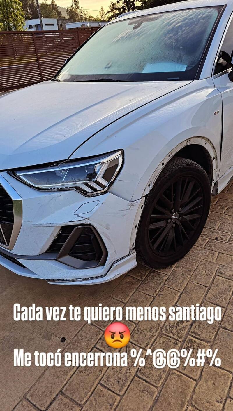 Si bien no entregó muchos detalles, a través de sus historias de Instagram compartió una foto de cómo quedó su vehículo luego del incidente, mostrando evidentes daños en el costado. Además, el deportista añadió: “Cada vez te quiero menos, Santiago”.