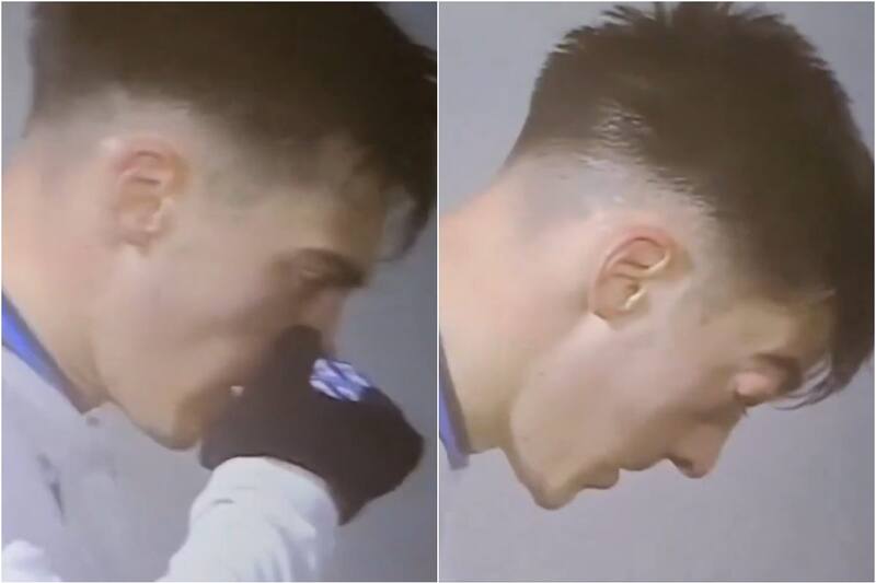 Ante esto, el futbolista se llevó la mano al rostro, al parecer sin entender lo que acababa de ocurrir.