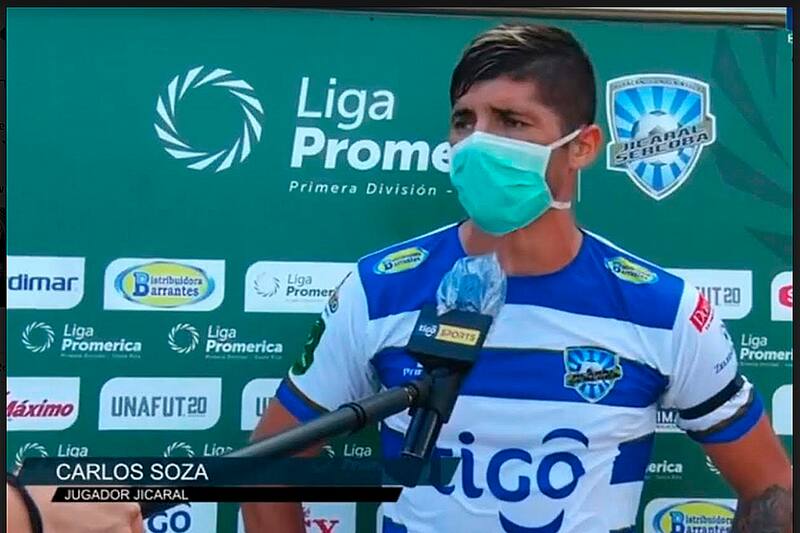 Después del gol, Soza fue elegido la figura del partido por la televisión "tica". Ahí vino otra imagen que llamó la atención. Con mascarilllas, guantes y micrófono a distancia, atendió a la prensa. "Tengo que cumplir, pese a que acá la gente está más relajada. Yo la verdad estoy asustado por el coronavirus, uso guantes hasta en los entrenamientos, tengo las manos más blancas del país, acá mis compañeros me molestan, pero prefiero prevenir".