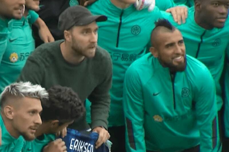 El jugador danés visitó a sus compañeros tras su accidente cardíaco. Arturo Vidal le dedicó un emotivo mensaje en redes sociales.