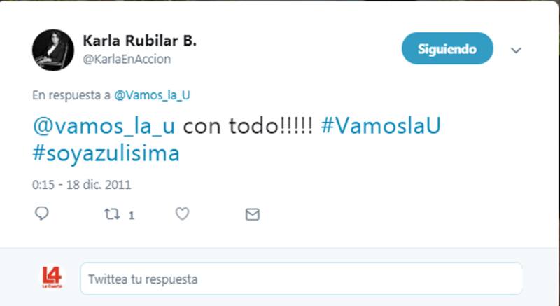 Es que el volante del Cacique apuntó al reconocido fanatismo de Karla Rubilar por la Universidad de Chile.