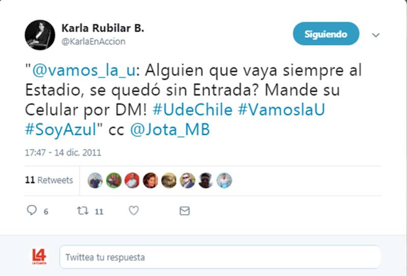 Así, por ejemplo, se "reflotó" un posteo del 17 de septiembre de 2011, donde le respondió a @rnunezg: "De pasión hablo con certeza, pues alentamos nos vaya bien o mal, no como el indio que a la primera, vacío deja el monumental".