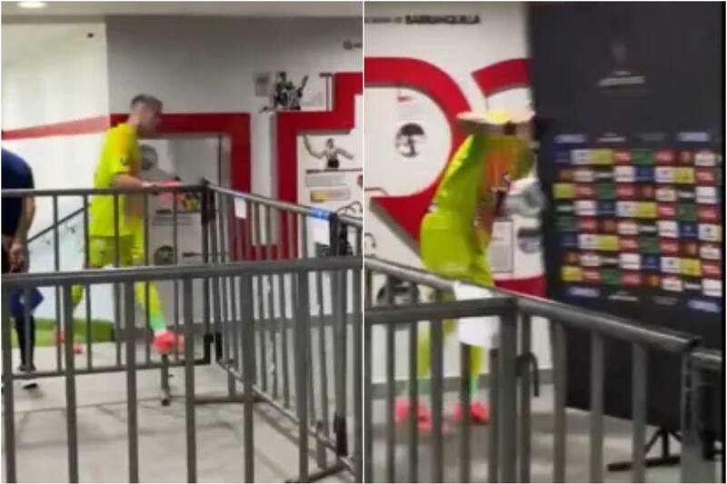Solo, sin el resto de sus compañeros, el meta abandonó a toda prisa el campo de juego y enfiló hacia camarines. En ese trayecto, una cámara dispuesta en los túneles de acceso a los vestuarios captó su impotencia.
