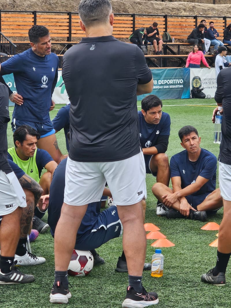 En rigor, los jugadores —exjugadores— llevan rato así. Es un viernes por la mañana, último entrenamiento en el Club Deportivo de la Universidad San Sebastián, que comenzó a las diez en punto con algunos estiramientos y ejercicios recreativos. Todos ríen de buena gana cuando Jorge Acuña debe pagar con flexiones de brazos sus distracciones frente a los estímulos auditivos del preparador físico. Es, con creces, el que más cae en sus trampas. En pocos minutos más, arrancarán el típico juego de las naciones —aquí Marcos González es el que los hace reír con sus errores— y luego se dividirán en tríos para hacer un reducido y afinar la toma de decisiones.