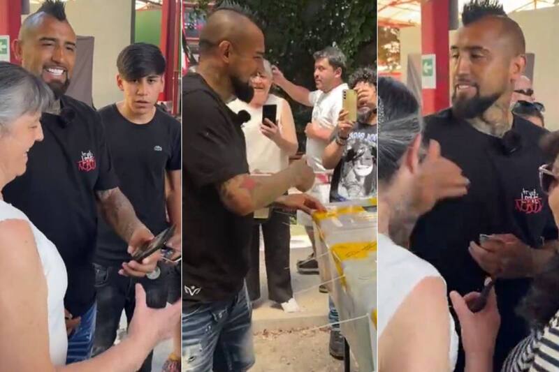 Además, en el registro, se vio cómo Vidal revolucionó el lugar y generó un caos total entre todos los presentes, quienes se abalanzaron y le pidieron cientos de fotos. Incluso, una de las militares a cargo de la seguridad del recinto no se aguantó y también se quiso inmortalizar junto al bicampeón de América con la Roja.