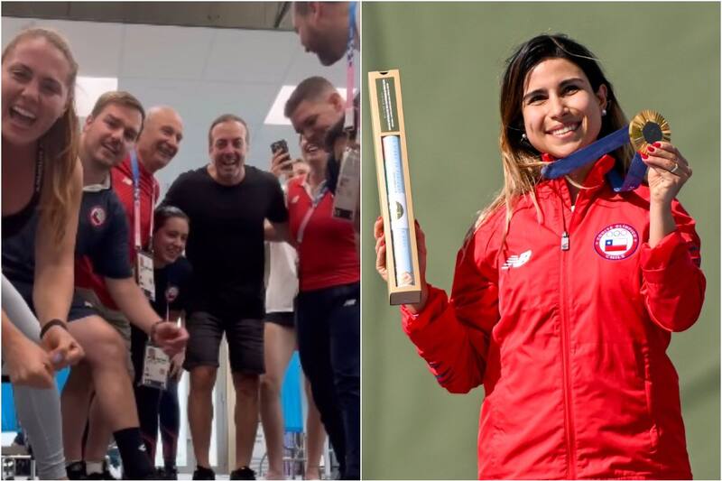 Nicolás Massú y parte del Team Chile celebraron con todo la medalla de oro que ganó Francisca Crovetto este domingo en la final de tiro skeet en los Juegos Olímpicos de París 2024,