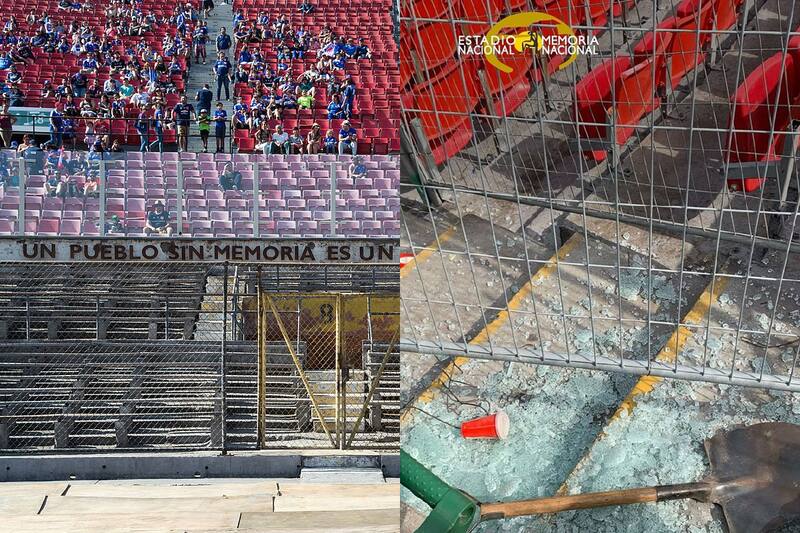 La Corporación que administra el Memorial del Estadio Nacional denunció que los hinchas de Universidad de Chile causaron daños en el emblemático lugar que recuerda a las víctimas de la dictadura. El hecho ocurrió durante la victoria de los azules ante Unión Española el pasado martes.
