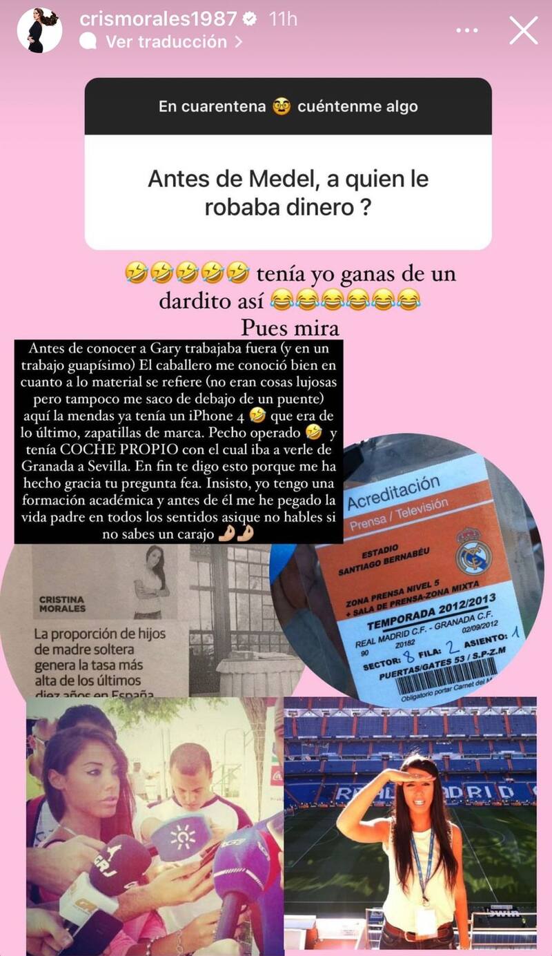 “Antes de conocer a Gary trabajaba fuera (y en un trabajo guapísimo). El caballero me conoció bien en cuanto a lo material de refiere (no eran cosas lujosas, pero tampoco de sacó de debajo de un puente)”, recalcó la reportera española.