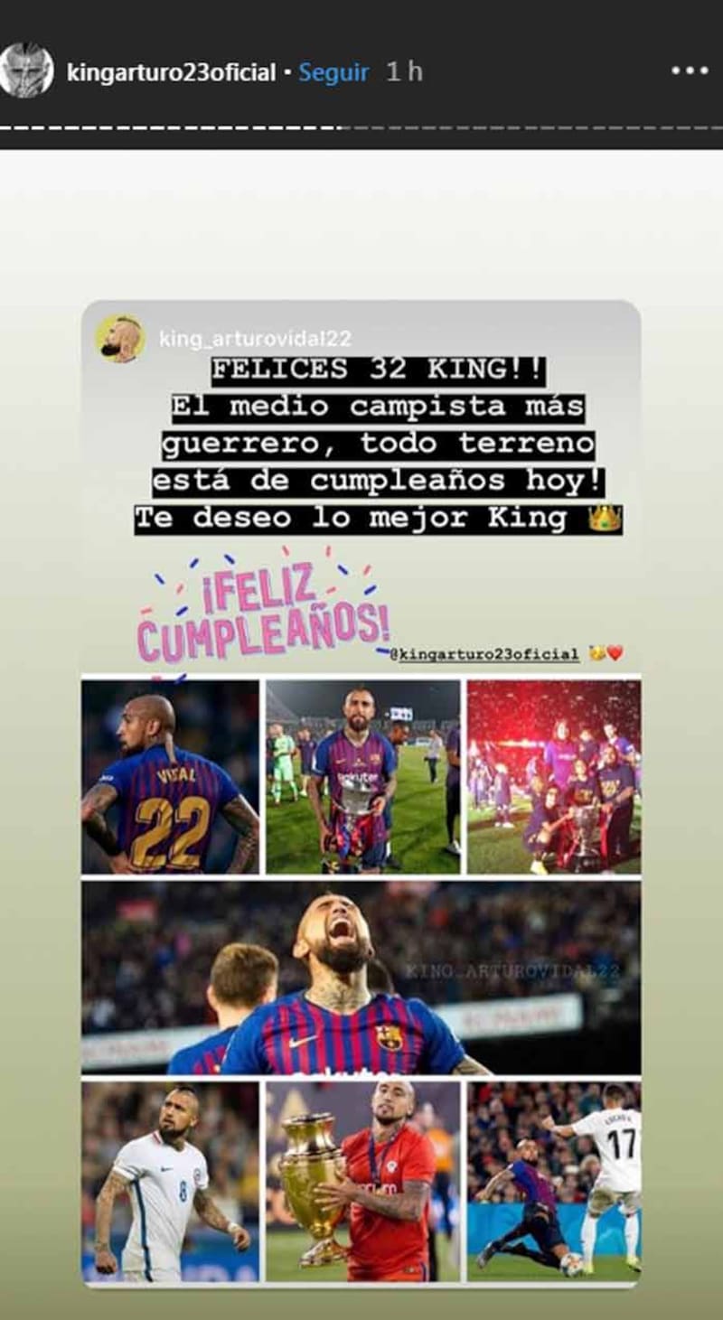 El Barcelona, pero también ex compañeros del Bayern Munich, Juventus y Colo Colo, saludaron hoy los 32 años de vida de Arturo Vidal. Y sus compañeros de la Roja no podían faltar.