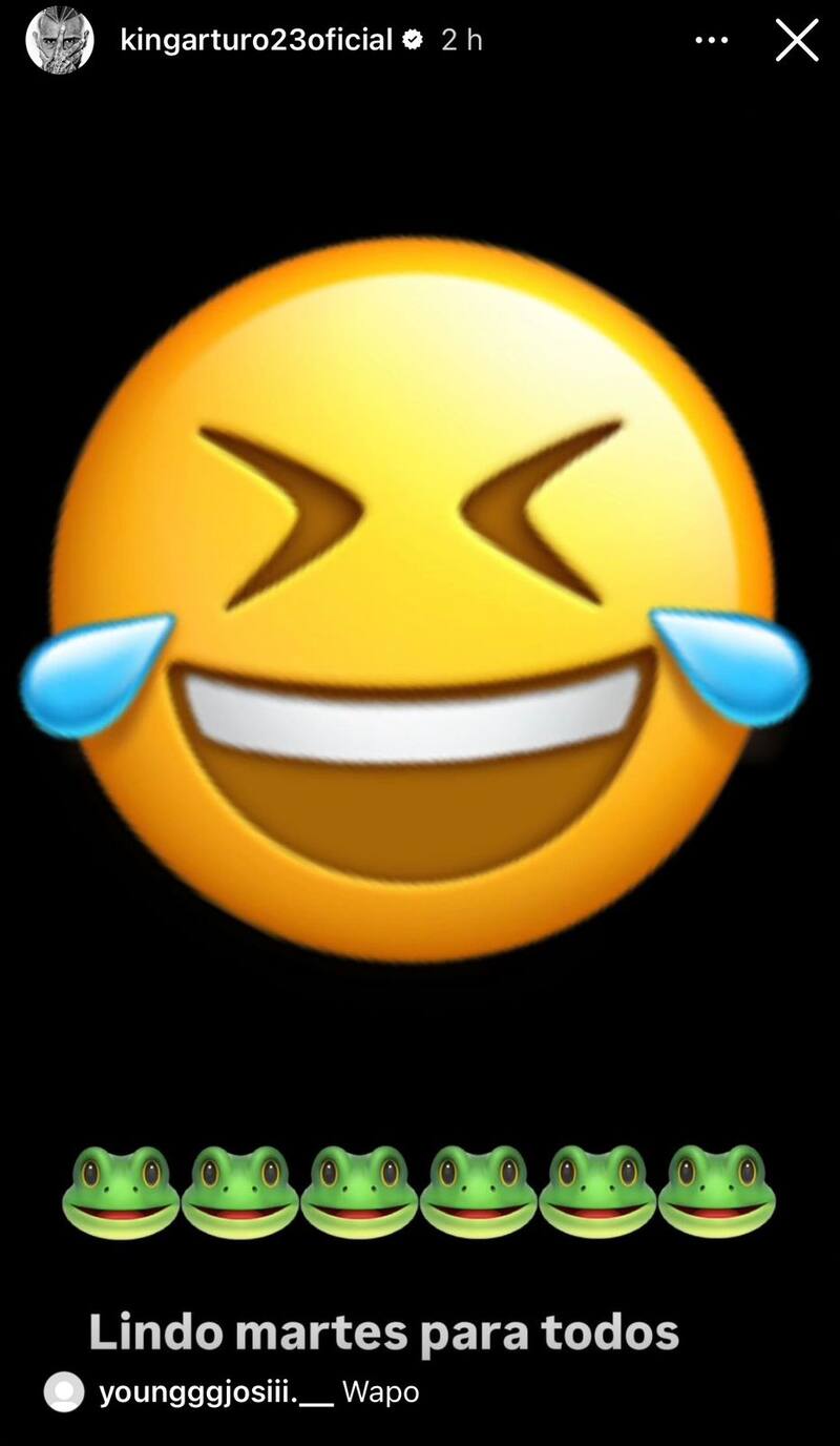 “Lindo martes para todos”, escribió el volante, quien acompañó su mensaje con un emoji grande de risas y varios sapos, en clara alusión a la acusación que llegó por parte del Romántico Viajero.