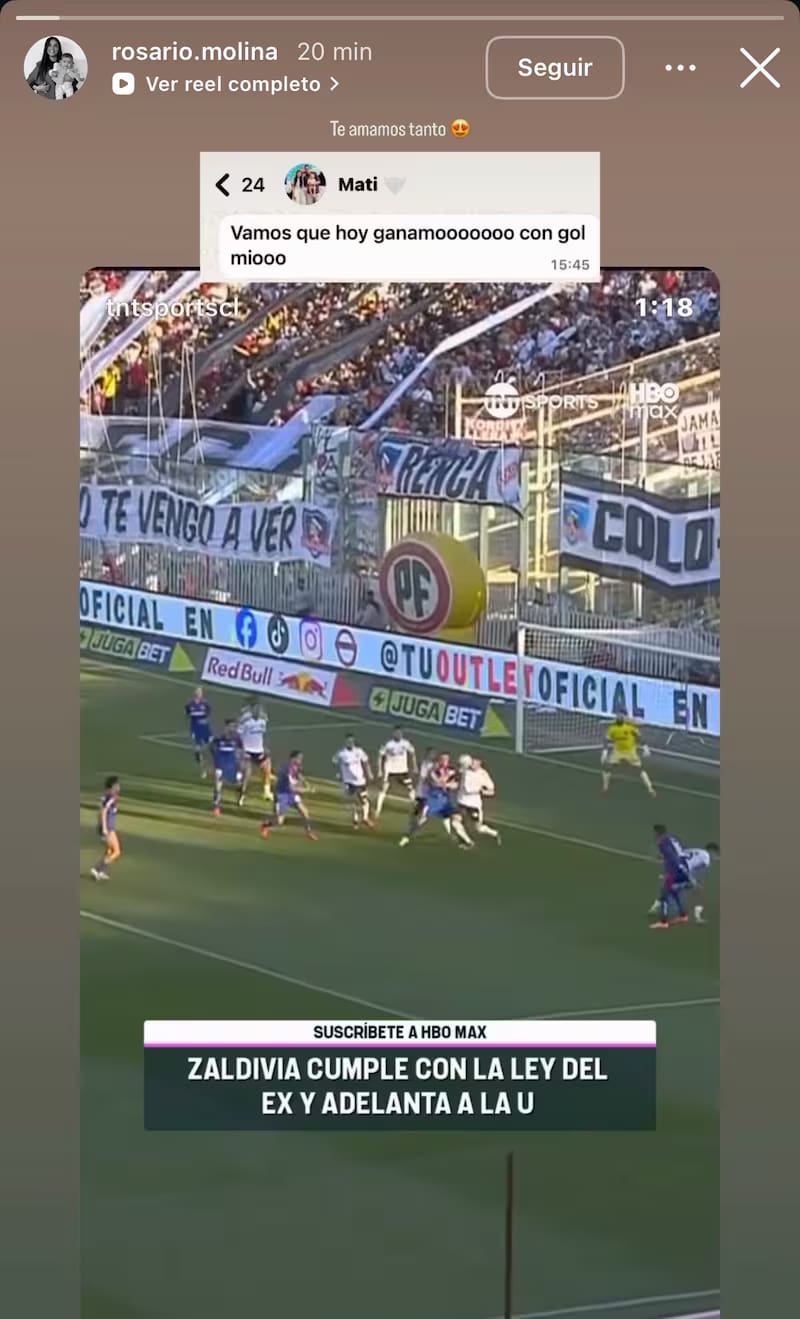 Al rato, su esposa, Rosario Molina, compartió una historia con un mensaje de WhatsApp muy claro: “Vamos que hoy ganamos con gol mío”, le decía el jugador.