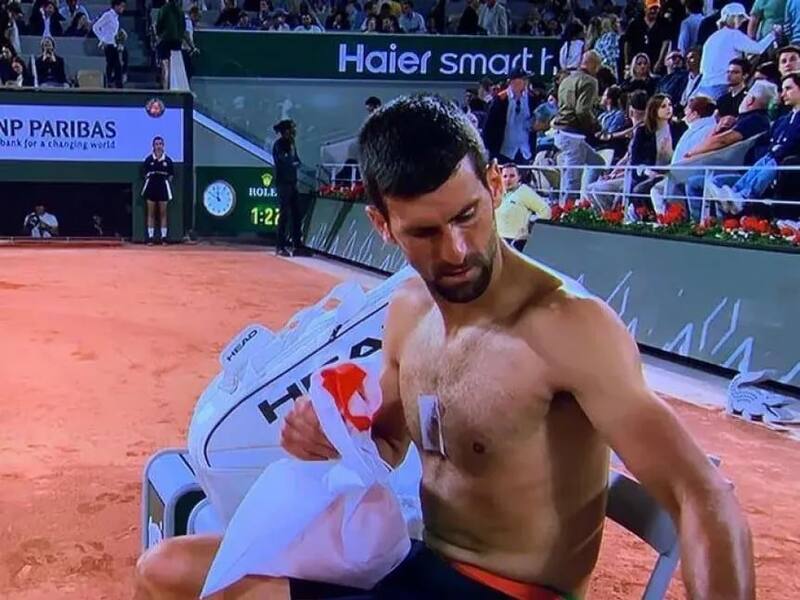 Pero más allá de sus increíbles números y del nivel que viene mostrando este 2023, los últimos días el tenista serbio se robó la mirada por otro tema, algo más singular: en su partido contra Márton Fucsovics, tras cambiarse la camiseta, a Nole se le vio un curioso aparato, una especie de círculo grisáceo, pegado con una vistosa cinta adhesiva en el centro del pecho.