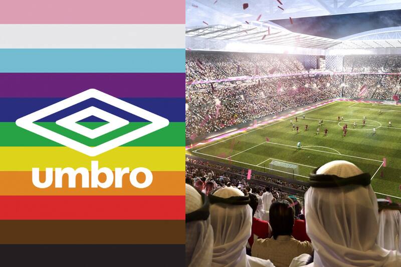La marca de vestuario e implementos deportivos Umbro sacó aplausos en redes sociales al incorporar los colores de la comunidad LGTBIQ+ y entregar un crítico mensaje sobre las vulneraciones de derechos que rodean el Mundial de Qatar 2022.