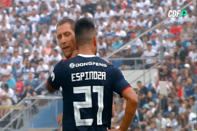 Espinoza, que estaba al lado, no se demoró nada en ir a encararlo porque pensaba que se estaba burlando de la "U", aunque lo hizo con un combito en su rostro, el que fue visto en primer plano por el árbitro Roberto Tobar, que no se demoró nada en mandarlo a las duchas.