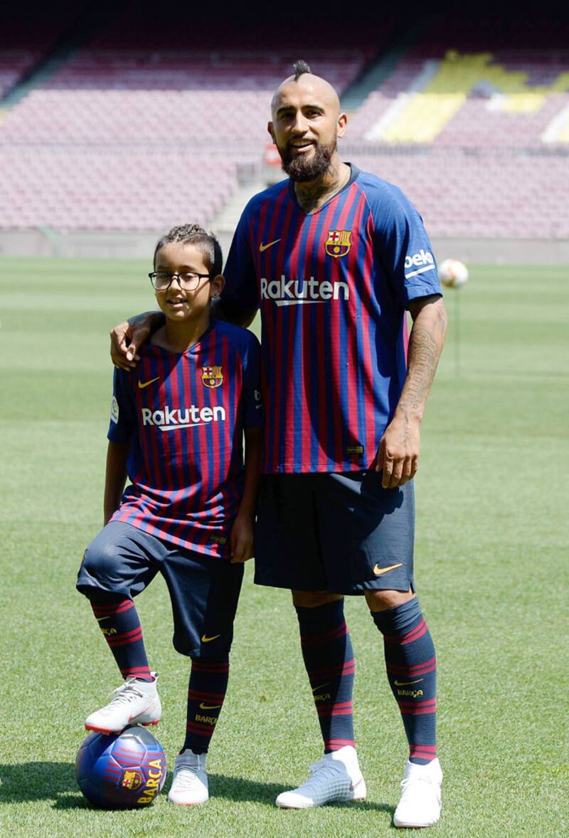 Arturo Vidal no sólo aseguró que su hijo Alonso es "el mejor periodista de Chile" por anunciar antes su arribo al Barcelona, sino que lo llevó a vivir en carne propia lo que es la presentación de un jugador en el cuadro catalán.